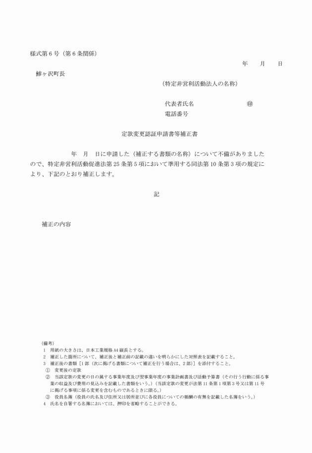 3 条例第4条第3項の補正書は、定款変更認証申請書等補正書(様式第6号)によらなければならない。
