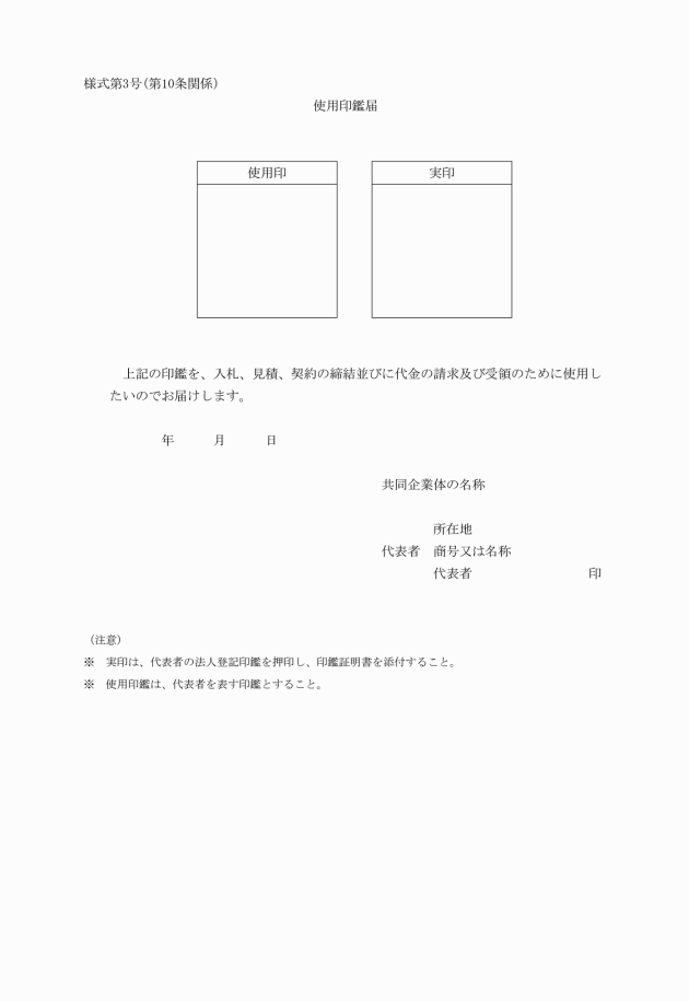 第10条 共同企業体は、競争入札参加資格の審査を申請するときは、指定の期日までに、次の各号に定める書類を町長に提出しなければならない。ただし、町長が特に認めた場合は、その一部を省略することができる。